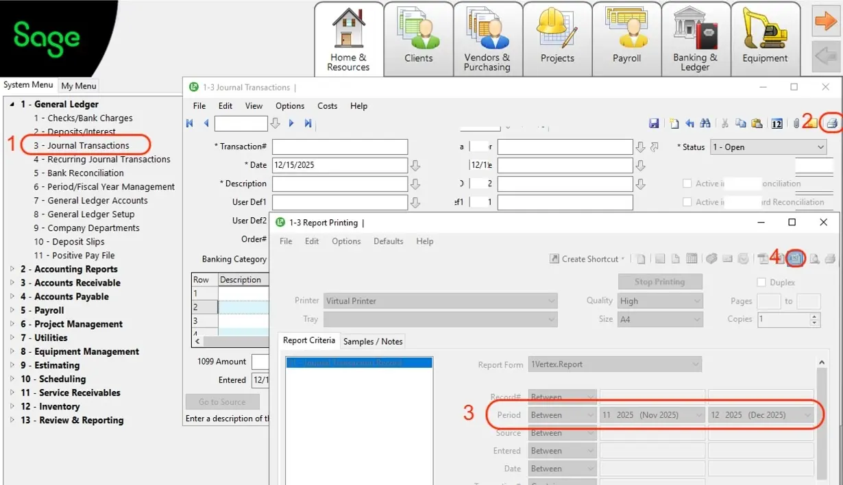 - Go to 1-3 Journal Transactions.